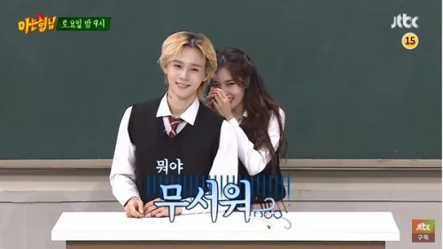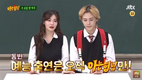 泫雅在《认识的哥哥》释出的最新预告中,一开头就告诉主持人:“我带了男朋友来。”马上就引起了现场一阵骚动,金希澈兴奋地说道“居然会有偶像情侣来”,其他成员也纷纷激动地向小俩口提问“开始恋爱的?”、“怎么告白的?”、“两人同岁吗?”,吓得她害羞地躲在男友背后。