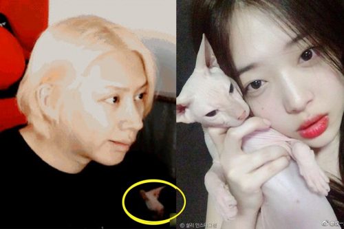 Super Junior 成员金希澈在直播时被拍到屋里有一只无毛猫在走动,疑似是雪莉生前的爱猫。