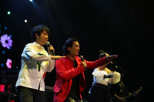 接着就是大家期待已久的“夏日么么茶兄弟合体”,阿牛从舞台中央出现与任贤齐合唱《浪花一朵朵》,这难得的合体加上经典的歌曲当然是引起了全场欢呼并一起大合唱,任贤齐感性说:“在音乐的路上很感谢阿牛,他让我有了音乐生命的另外一个高峰”语毕两个大男人就抱在一起画面十分动容。