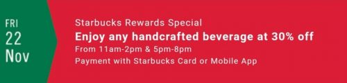 好消息!星巴克11月推出系列促销活动,第二杯饮料只需RM0.30!