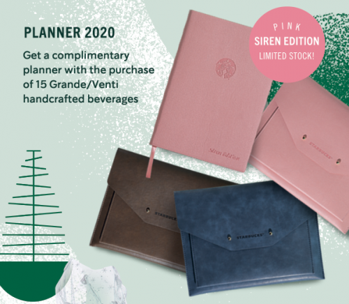 星巴克2020年的笔记本共有三种颜色选择,包括深蓝、深褐及限量推出的粉色!有兴趣想买的朋友,只需要购买15杯Grande或Venti饮料就可以获得咯!数量有限,想要的记得快!