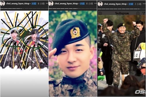 T.O.P于服役完成后,近来都在个人IG发出各种艺术画照、搞笑影片,10日却一连发了十几个限时动态,其中包含转发了太阳的发文,以及好几张太阳与大声的新闻照,还在照片上画上了光芒,毫不保留地表现出了对队友回归的喜悦。