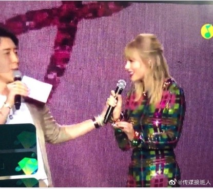 泰勒丝11日晚间在广州举办见面会,活动现场邀请到男星陈正飞担任主持人,殊不知却纷纷有粉丝发文炮轰,指称陈正飞英文水平差,没办法好好与她沟通,主持得也不好,使得场面几度尴尬,甚至还一直与她有肢体接触,行为引起不少人骂“没有礼貌”,然而另一方面也有人贴出另一个角度的照片,表示陈正飞并没有碰到她,还贴出了照片证明。