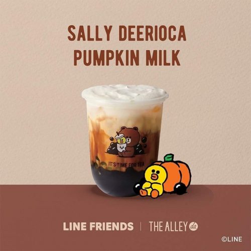 鹿角巷和Line Friends联合推出的饮料,包Sally Deerioca Pumpkin Milk、Brown Pumpkin Hoji Milktea和Sally Orange Smootie!
