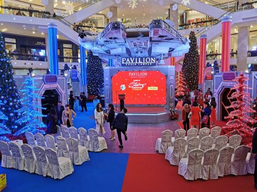 Pavilion首次与The Walt Disney Company Malaysia合作,特别以Star Wars为主题!他们在广场内设置了超巨大的宇宙飞船Millennium Falcon Replica!值得一提的是,这已被列入Malaysia Book of Records!此外,宇宙飞船在每晚的8时,还会配合灯光启航摇摆,非常壮观!
