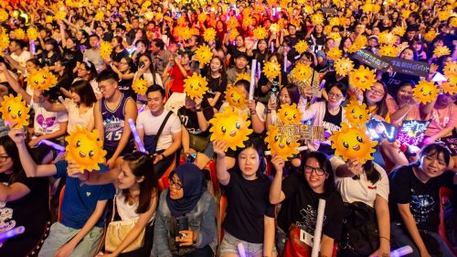 JJ在台上使用圣所APP丢小瓶子的例行环节时,在舞台上也忍不住不断想到大马的各种美食的他,以一张惬意坐在草地上,手捧着仿佛阳光照射着的”东南亚热情迷你小岛”,搭配写下“特理麻卡色一!(谢谢的马来话:terima kasih)马来西亚的朋友们!我爱你们!希望我们可以一直温暖下去!肉骨茶、nasi lemak(椰浆饭)、laksa(叻沙)、虾面、satay(沙爹)….. 好想全部一起吃掉!”