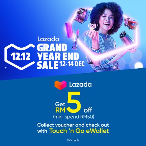 从12月12日至12月14日,在Lazada App消费满RM50,并使用TNG eWallet结账,将可获得RM5折扣!