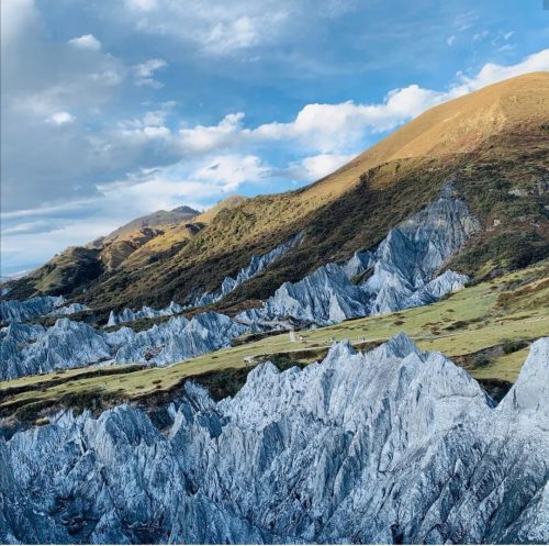 墨石公园给人第一感觉就像是普罗米修斯的场景,奇幻的墨石景观与宽阔的草原、起伏的雪山、迷人咋藏寨相互映衬,构成一幅绝妙的风景画!这里的岩石,并不是平常见到的色黑如漆的墨石,而是一种糜棱岩!它是由鲜水河断裂带的岩石受到挤压、剪切、破碎并糜化而成的!