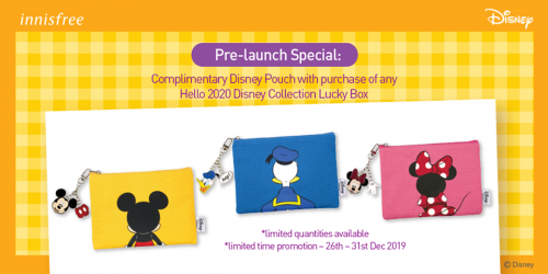 为配合新推出的innisfree 2020迪士尼限定系列产品,该品牌于官方网站正式推出限时优惠!从即日起至12月31日,只要购买innisfree Hello 2020 Disney Collection Lucky Box即可免费过得Disney Pouch精美包包!Disney Pouch共有三种款式,包括Mickey、Minnie和Donald Duck,感觉每个都很可爱、鲜艳!