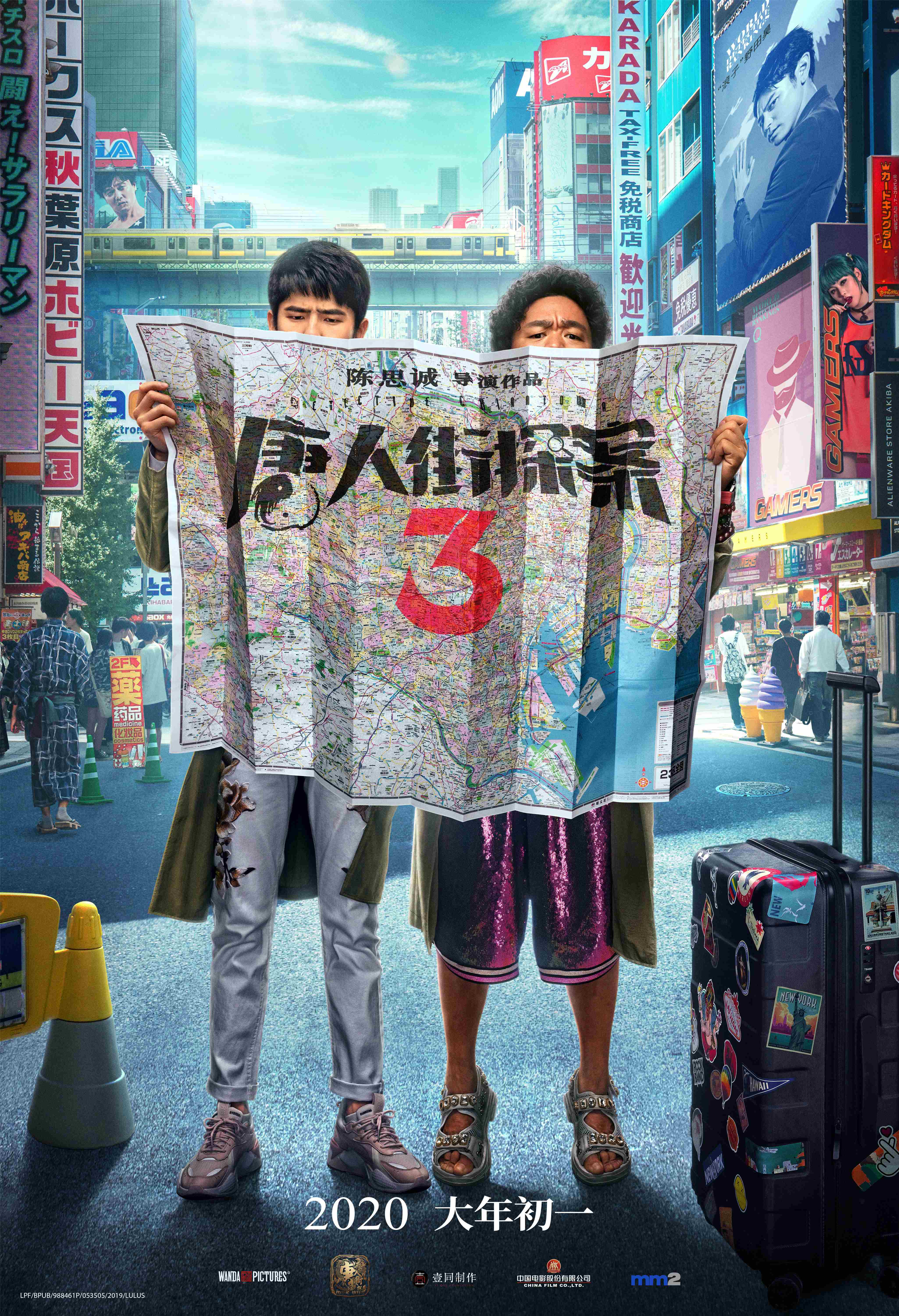 由mm2 Entertainment发行,陈思诚编剧与执导,王宝强与刘昊然领衔主演的侦查喜剧电影《唐人街探案3》宣布定档农历新年大年初一,将于2020年1月25日全马上映。此前《唐探》系列两部电影所取得的好口碑与好成绩让这次的续集受到极大的关注,而早在《唐人街探案2》的结尾,导演陈思诚就已埋下伏笔。 “唐人街神探”受日本侦探野田昊之托,将前往东京查案。第一部“弄喜”曼谷,第二部“嗨翻”纽约,第三部又来到本格推理的热土——东京,《唐探》系列将再一次解锁新的故事与版图。