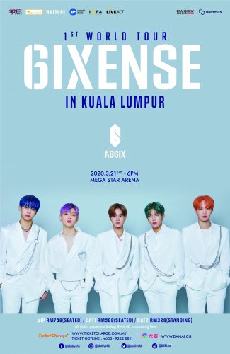 以出道不足一年的新人之姿,AB6IX在2019年11月以首尔为起点,展开出道以来首场世界巡回演唱会,并联同主办SKN LIVE信韩娱乐携手呈献《AB6IX 1ST WORLD TOUR <6IXENSE> IN KUALA LUMPUR》,落实于2020年3月21日(星期六)在巨星竞技场(MEGA STAR ARENA) 献上是次世巡的吉隆坡站,将直卷全球的AB6IX独有魅力带到马来西亚,为ABNEW( AB6IX的粉丝名称)带来足本的演出,势以精彩的原创歌曲、热烈的歌舞,让马来西亚的气温再度提升!
