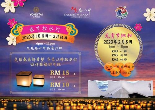 元宵节当天,又见马六甲将特别举办一系列精彩活动,像是猜灯谜、舞狮以及百人齐捞生等!除此之外,你也可以选择到临海江畔体验放水灯!主办单位提供两种灯盏供大家选择,价格分为RM10及RM15!