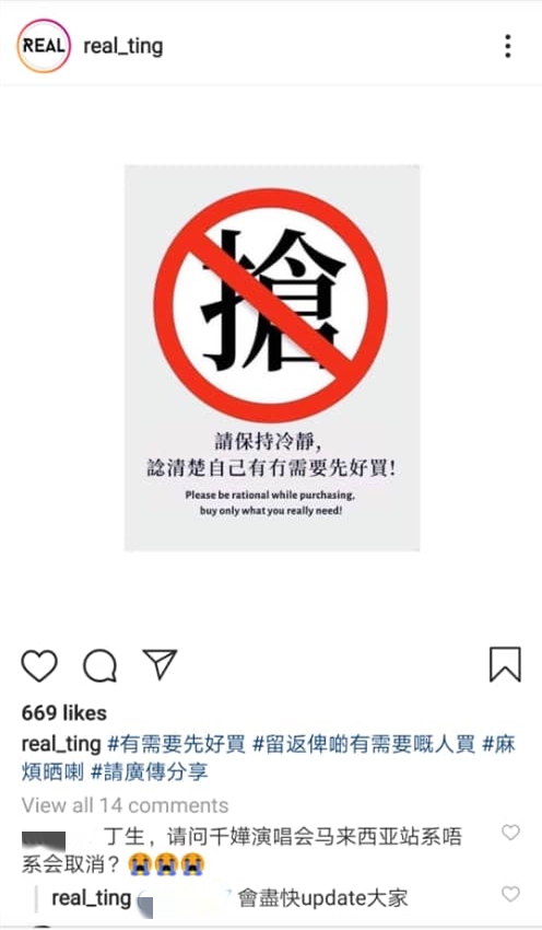 【特别报道】香港歌手杨千嬅日期宣布中国柳州和新加坡站演唱会延期,而大马站也可能会延期,也有粉丝心急到她老公丁子高的IG询问演唱会是否会取消,丁子高也代妻子回复“会尽快update大家”。