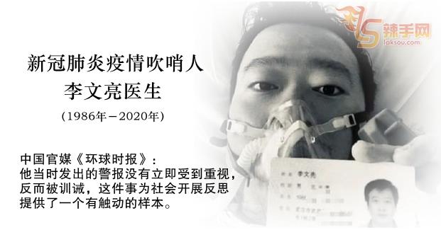 对于李医生的逝世,中国官方媒体《环球时报》发表社评文章《向李文亮医生致以敬意》,表示李医生的专业性警觉尤其令人对他产生了敬意,他当时发出的警报没有立即受到重视,反而被训诫,这件事为社会开展反思提供了一个有触动的样本。