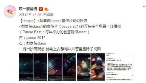 据悉,有韩国网友在其社交平台曝出《梨泰院Class》放出的一则宣传片与中国有名的《Pause 2017 Opening Titles》很是相似。随后很多韩国网友评论称这个行为很拙劣没有良心。之后也有网友解释这个是宣传漫画《梨泰院CLASS》而制作的,和电视剧并没有关系。与此同时,国内原版《Pause 2017 Opening Titles》的作者Zaoeyo在事情发酵后也在微博作了回应,称早就有韩国朋友告诉过他这件事情,还解释到这个作品花了他四个月心血创作,是公益作品,他本身并没有收入,希望《梨泰院CLASS》方不要再拿去利用。网友们也都十分支持他维权:“真的好优秀,太厉害了!支持维权!”
