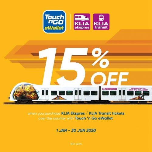 从即日起至6月30日,只要前往车站柜台,使用TNG购买KLIAExpress或KLIATransit车票,即可获得15%折扣! 此外,这项优惠也适用于购买吉隆坡机场支线特惠车票,例如乐龄人士车票、一个马来西亚大专生折扣卡(KADS1M)持卡人以及马来西亚福利局残疾人士卡持卡人的车票!