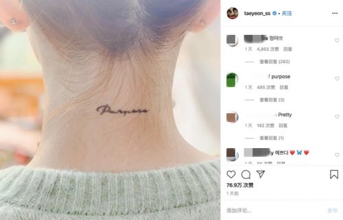 韩国人气歌手金泰妍自少女时代出身,担任队长的她都歌声、外貌到个性都圈粉,两年多前她在脖子后方刺下英文单字“Purpose”,金泰妍解释该刺青的意义是“不想要活得没意义、虚无”。23日金泰妍于社交平台再次放出照片,没想到她的亲哥哥现身回应,意外成为焦点。