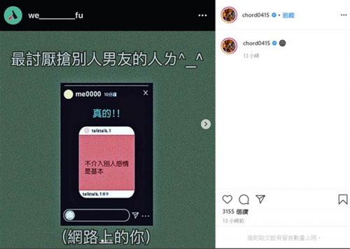 谢和弦日前转发“女森”的图文,上面略有“现实中的你”和“网路上的你”,指一些人在网上一派正经,嘴上说最讨厌抢别人男友的人,拒绝引入别人的感情,私下却做出扮演自己的脸的事,抢走别人男友还沾沾自喜,引来网友反酸谢和弦女友莉娅近似也做相同的事,谢和弦则亲上火线护爱,迫害咒说闲话的网友全都生病,之后又关掉留言功能。