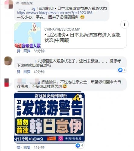 由于照片中李欣怡并没有戴着口罩,所以许多网民也纷纷留言提醒“记得戴口罩”,“回来记得自行隔离”,也有热心的网友直接把日本北海道进入紧急状态的新闻截图通知她要多注意安危。