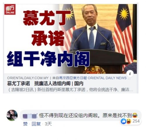 中文留言倾向不满新政府组成
