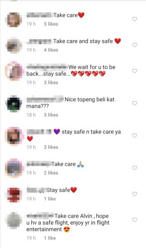 Alvin近几年在马来演艺圈表现亮眼,闯出了名堂,IG追踪粉丝高达1100万。他2月29日就开始打卡自己在东京拍摄的工作照,接着就飞往纽约游玩,PO出许多景点照,粉丝们都暖心留言“Take Care”、“Stay Safe”、“Safe journey back!”,后来有新闻登出后,引来以上网友谩骂声,留言内容两极化。