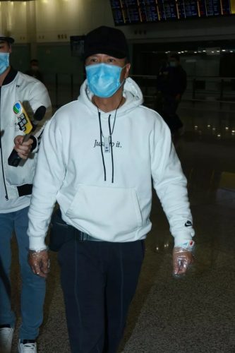 疫情蔓延美国,甄子丹一家紧急回港,现身香港机场的一行四人,老婆走在前面,为甄子丹开路,他们夫妻两人都带着口罩,十分注意防护。