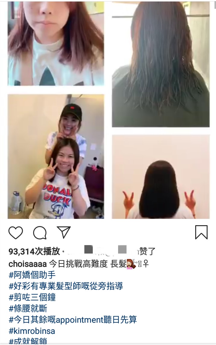 阿SA连续几天都在IG晒出自己为关智斌和工作人员剪染发的视频,她写:“距离成为一个出色的发型师又迈进了一大步”,期间还引出两位天后容祖儿和郑秀文留言大赞“好犀利”,容祖儿甚至敲碗要阿SA帮她“驳发”。