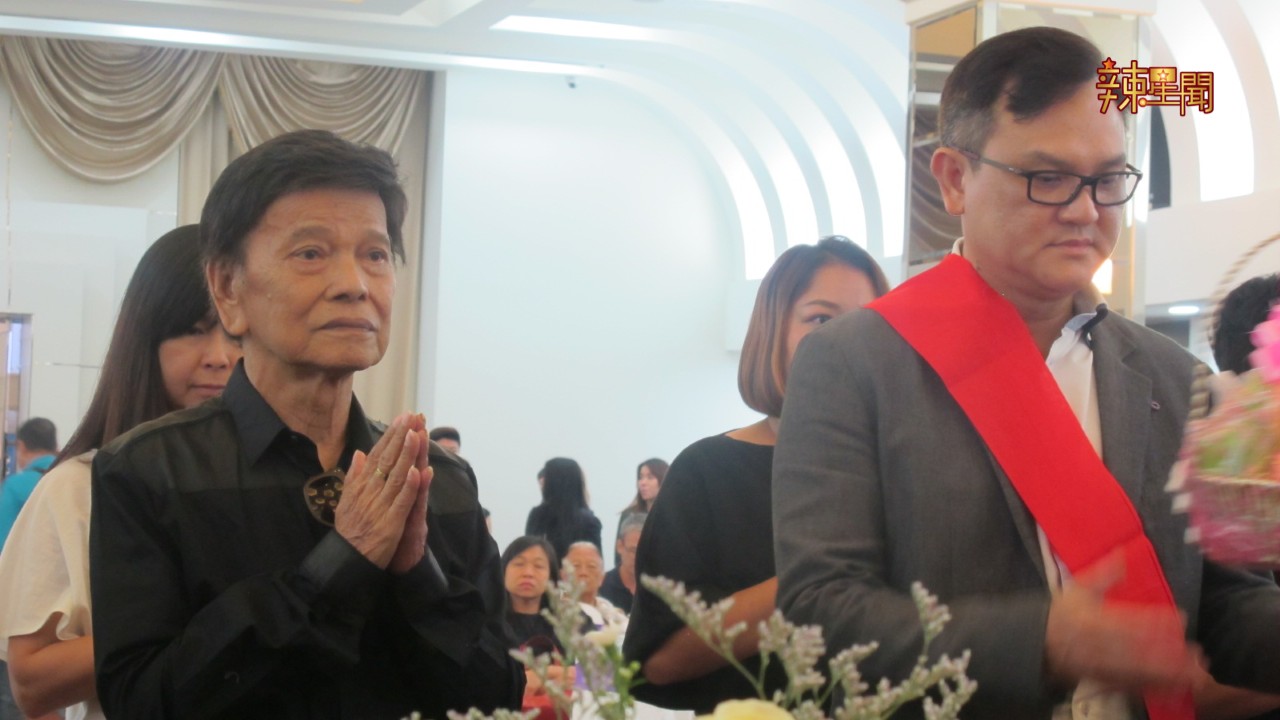 郑锦昌(左) 一脸哀伤,不舍老朋友离去。