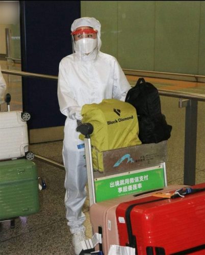 蔡卓妍(阿Sa)、钟欣潼(阿娇)、关智斌(Kenny)、陈家乐、何珮瑜(Jeana)及黄德斌于马来西亚赶拍网剧《女法医JD》,因全球新冠肺炎疫情爆发,原定4月中才拍毕,但当地需要停工避炎,所以一众演员决定先“撤离”回港,众人将面对14天居家隔离。 24日晚上约10时,阿Sa、阿娇、Kenny、家乐、Jeana等步出香港机场,更穿上全副防疫装备,包括白色保护衣、口罩及保护面罩。