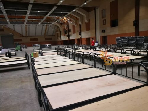 这批照片可见雪州沙登农业博览馆(MAEPS)内,已摆满床铺,甚至还组合起了间隔区间,大马版方舱医院已在如火如荼地架设中。