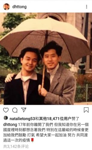他在2015年4月1日哥哥逝世12周年时,在Instagram晒出两人当年的世纪牵手照,写下:“死生契阔,与子成说。执子之手,与子偕老。”令许多粉丝相当感动。