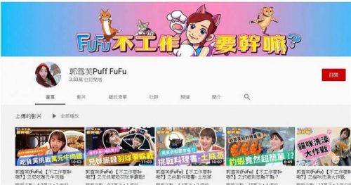郭雪芙约1个月前开始在Youtube频道上传影片,目前在”不工作,要干嘛?”系列已上传7支影片,订阅人数来到3.5万人次,单支影片观看人数最多达12万人次,成为网红界的一颗新星。