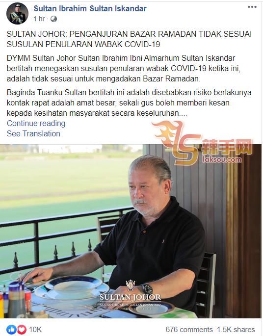 陛下说,为了人民的安全,不止在柔佛州,其它地方也不宜举办斋戒月市集。