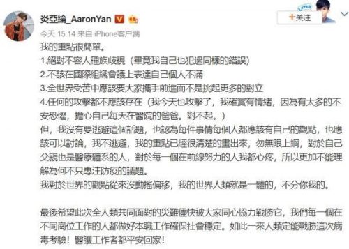 9日,中国台湾艺人、前“飞轮海”组合成员炎亚纶突然在社交媒体发文,用激烈言辞攻击世卫组织总干事谭德塞。后者此前一天刚公开透露收到来自台湾民进党当局的人身攻击。