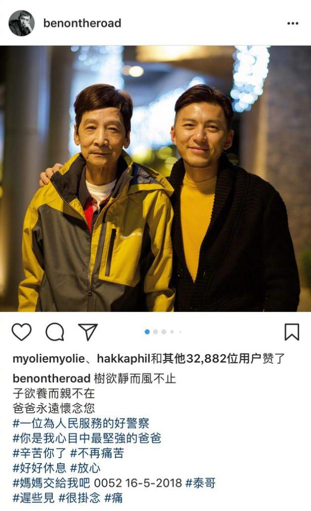心痛欲绝的袁伟豪在社交网公布父亲昨日离世的消息,除了上传多张与爸爸的合照及爸爸生前照片,还一字一泪写道:“树欲静而风不止,子欲养而亲不在,爸爸永远怀念您!”袁伟豪又加上“你是我心目中最坚强的爸爸”、“妈妈交给我吧”等字眼,每一句流露其伤痛之情。好友汤洛雯陈山聪、胡定欣、岑丽香亦留言表示哀痛。