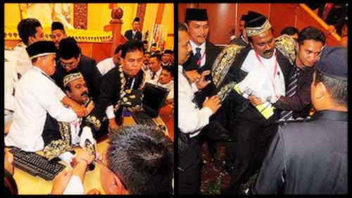 据当时情况,倪可汉被十余名议会侍卫“包围”,似乎要重演2009年霹雳州变天,时任民联议长西华古玛被侍卫从议长座位抬出议会厅事件。