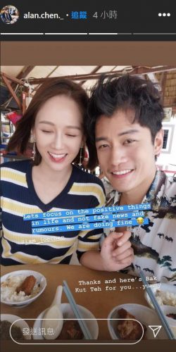 而男友Alan也在IG发布了限时动态并标记陈乔恩,撇清分手谣言,以合照向大众放闪,无奈写道:“多注意生活中积极的事情,而不是那些假新闻和谣言,我们非常好!”,许多粉丝虚惊一场,同时感受到两人稳定的感情,也祝福他们能够长长久久、赶快宣布好消息啦!