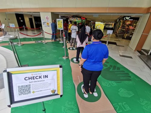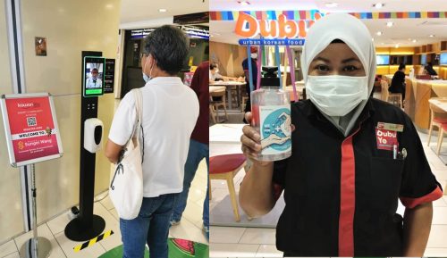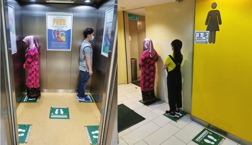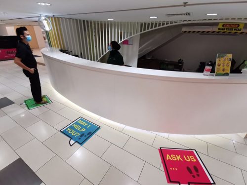 自从病毒受到控制,政府便逐渐开放各领域,允许商家、购物广场开放营业!为遵守政府设下的SOP,商家们都乖乖的准备好应对措施,如测量体温、记录访客资料、准备消毒剂等等!其中,金河广场就非常有创意的在商场内,设置了许多可爱、有趣的防疫指南及路标!