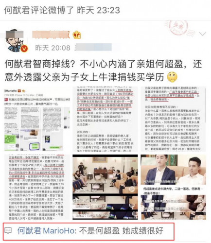 有网友猜测何猷君文中花钱上名校的子女是胞姐何超盈,对此,何猷君直接在该爆料微博下评论,“不是何超盈,她成绩很好。”31日,赌王去世第六天,有网友发现何猷君和三房之女何超莲社交平台取关了,两个人的账号上已经找不到任何关注对方的痕迹,引发讨论。