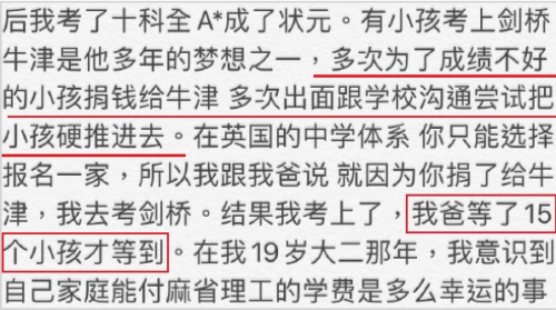 赌王何鸿燊去世,四房之子何猷君陆续在微博更新动态,先是发布了儿时与父亲的合影同框照寄托哀思,随后还发布了一篇长文,针对种种传言进行了反驳和否认。文章中透露何鸿燊之前曾经给孩子花钱上名校,但是自己则凭借努力考上了大学,称父亲连续等了15个孩子都没有完成的愿望,却在自己身上完成了。