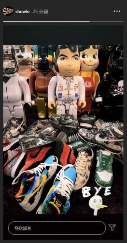 巧合的是,旧爱罗志祥也更新IG限时动态,晒出多个公仔及多双名牌运动鞋,右下角则放上了“BYE”的图示,做出道别口吻,跟这些潮牌爱物告别,一举一动仍受到瞩目。