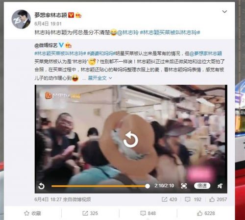 林志颖当下哭笑不得,急忙脱下口罩纠正:“林志颖”,林志颖妈妈也直呼:“你们都想林志玲喔”,而林志颖事后也在微博转发影片,标记林志玲并直呼:“林志玲林志颖为何总是分不清楚”,发文逗乐众人。