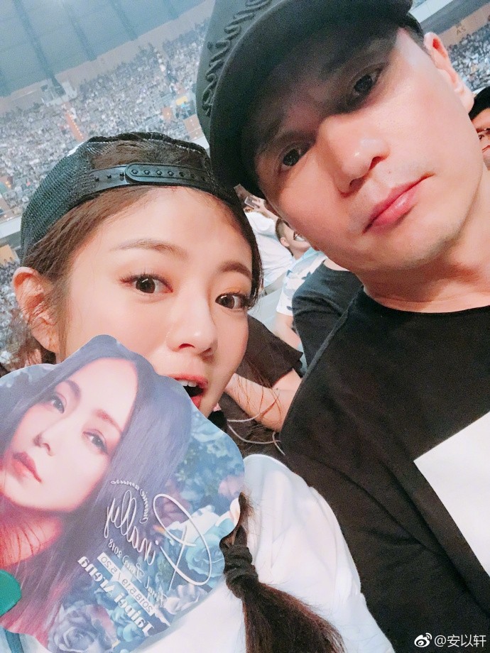 安以轩(左)昨晚和老公陈荣炼一起欣赏安室奈美惠演唱会。