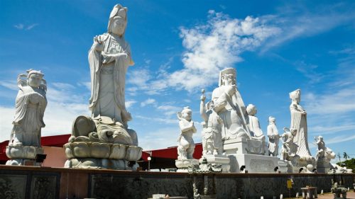 品仙祠大伯公和观音堂:“品仙祠、大伯公庙及观音堂”包含了最先有的大伯公庙,观音堂及虎爷洞之外,也增建了风景怡人的鱼池、龟池、假花果山,大伯公纪念馆!这里最令人瞩目的,就是那许多大大小小的神像,尤其那全国最大的大伯公石雕金身(48尺高),观音菩萨和天后娘娘(妈祖)!