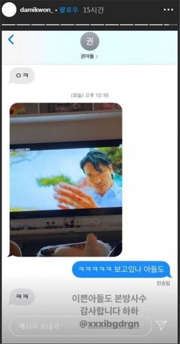 BIGBANG权志龙姐姐权多美8日在自己的IG上传了和弟弟互发短信的截图,截图中权志龙给姐姐发了一张捕捉到JTBC新电视剧《我们爱过吗》中金民俊登场时的照片截图,而时间点正是电视剧首播播出的时间。