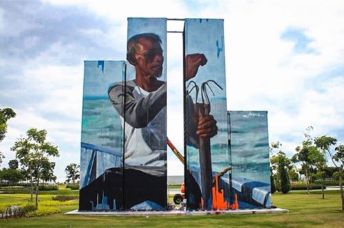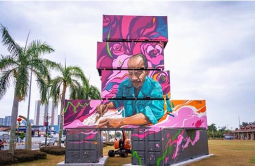 州政府为了推动槟城旅游,槟城国际货柜艺术节 将会持续展出!这些作品都是用多个货柜组成,由多位国内外艺术家在上面作画!创作出的每幅壁画艺术所描绘的特点,都与当地有关!