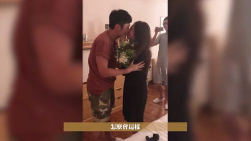当李荣浩一跪在她跟前,杨丞琳又大尖叫,但女明星仍不忘顾形象,先把头上的发夹拿掉,李荣浩嘴边则是掩不住的笑:“要拿(花)了吗?”杨丞琳一边喊手抖,李荣浩又宠溺的安抚她:“不抖不抖。”