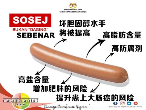 卫生部:香肠吃多不好! 13 Jul , 2020 | 民生关注, 民生百事 (吉隆坡13日讯)加工香肠坏处多! 卫生部在脸书表示,香肠里的“肉”与新鲜鸡肉含量是不相同的。 “香肠是一种加工食品,不是真正的肉类,而且吃多了会带来许多风险。” 卫生部建议,若正想吃香肠,也不要把香肠作为主餐和日常餐点。 分享