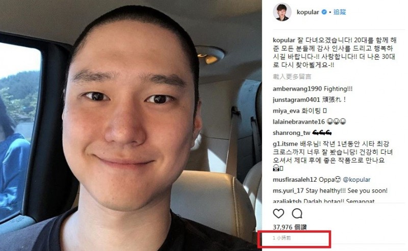 入伍前一刻,高庚杓在个人IG更新照片并向粉丝道别:“我会好好回来的!感谢20代一路陪伴走来的所有人,祝大家幸福!爱你们!我会向着更好的30代回归,再次与你们相见!”高庚杓PO上照片,已经先行理了小平头,模样帅气腼腆,让不少粉丝看了相当不舍。