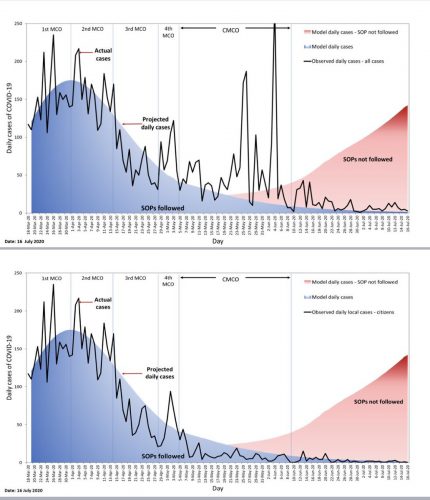 诺希山今日于推特發佈一张曲线图,显示马来西亚在3月18日实施行动管制令至今,每日的确诊人数。